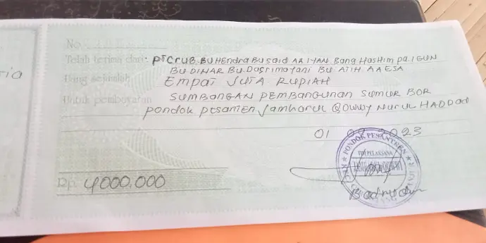 Terkumpul total dana Rp6 juta dari 10 muhsinin di Tangerang, Jakarta, Purwakarta, dan Bandung.