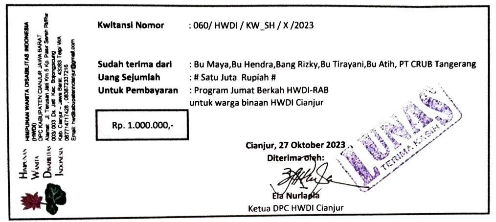Terkumpul total dana Rp2,25 juta dari 6 Muhsinin di Tangerang, Jakarta, Bandung, dan Depok.