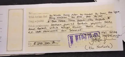 Terkumpul total dana Rp1,3 juta dari 8 muhsinin di Jakarta, Tangerang, Purwakarta, Garut, dan Bandung untuk 3 Kelompok Target Amal di Kota Bandung, Kota Cimahi, dan Kab Cianjur.