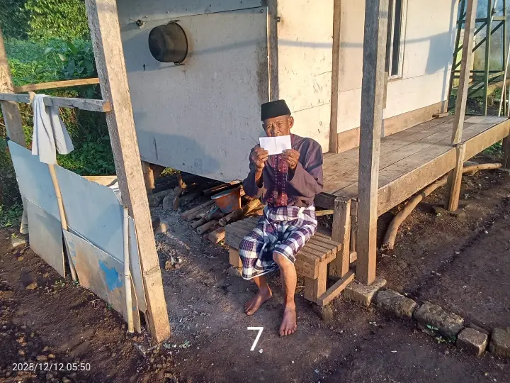 7. Bapak Adis, duafa lansia, di Kampung Angkrong desa Talaga Cugenang. Hidup sebatang kara di rumah semi permanen dengan pekerjaan serabutan.