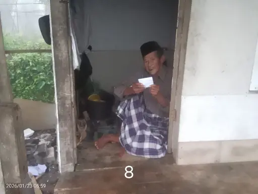 8. Bapak Adis, duafa lansia, di Kampung Angkrong desa Talaga Cugenang. Hidup sebatang kara di rumah semi permanen dengan pekerjaan serabutan.
