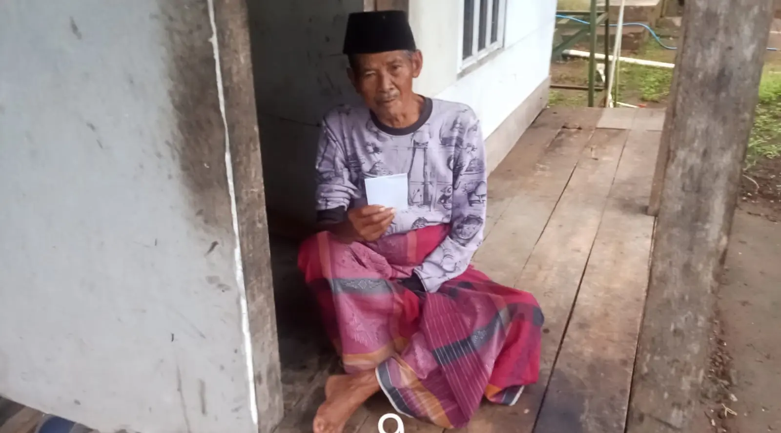 9. Bapak Adis, duafa lansia, di Kampung Angkrong desa Talaga Cugenang. Hidup sebatang kara di rumah semi permanen dengan pekerjaan serabutan.