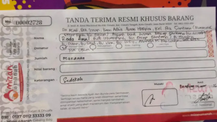 Terkumpul total dana Rp4,9 juta dari muhsinin di Bali, Purwakarta, Jakarta, Sukabumi, dan Bandung. Disalurkan untuk 5 Kelompok Target Amal di 3 Kota/Kab di Jawa Barat di Kab Sukabumi, Kab Cianjur, dan Kota Bandung, dengan rincian sbb: